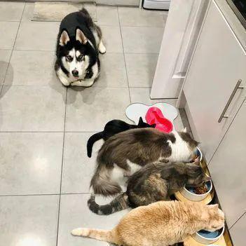 二哈Dory从小就跟着猫咪一起长大,超喜欢和猫猫们待在一起,只不过因为太憨了,没少被猫咪调教...