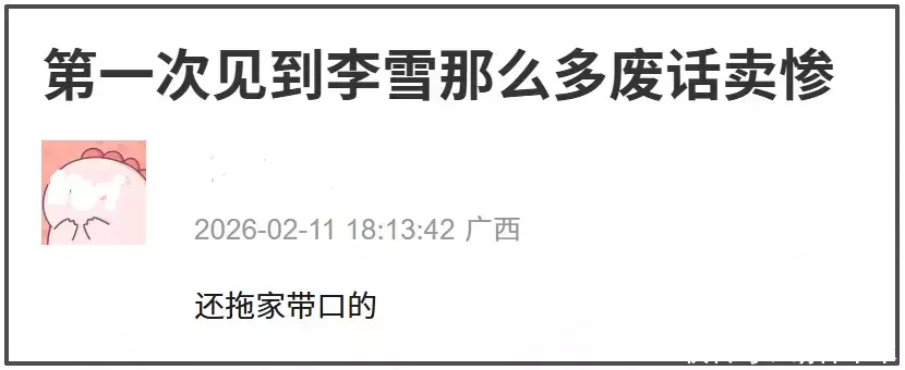 可惜,观众对李雪这番恳切的话语并不买账。《生命树》扑街了,所以导演开始走流程了,开始甩锅、卖惨、讲情怀。别的导演只卖自己的惨,李雪直接拖家带口卖惨,连续一周没有见到孩子都要提一下,体现自己的繁忙和辛苦。多少外出务工人员一年都见不到孩子,难道不辛苦?