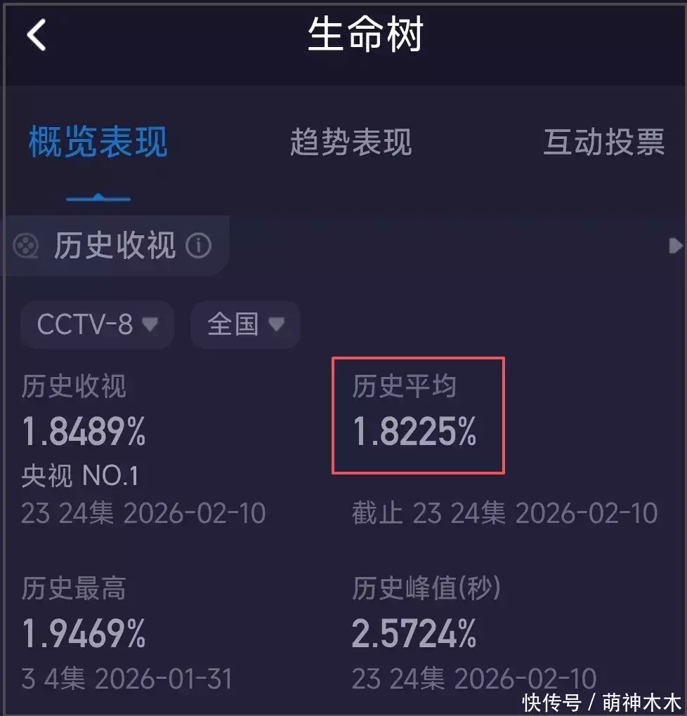 据悉,《生命树》播出之后的收视成绩和网播成绩都不好。目前该剧已经播出过半,平均收视率在1.8%左右,这个成绩放在央视八台实在是有些差了。