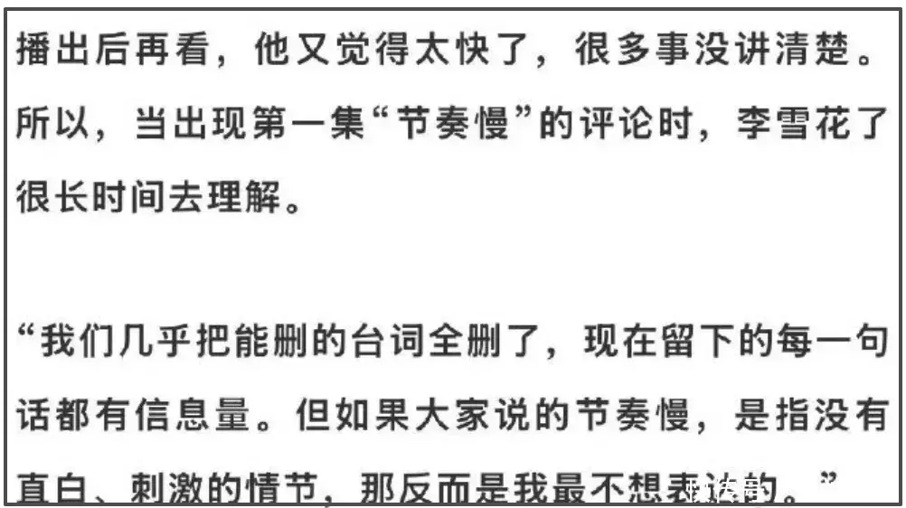 平台觉得剧集节奏慢,导演即使有怨言也只能忍下去调整、去剪辑;观众反馈剧集节奏慢,导演不以为意,只重视自己的艺术表达。