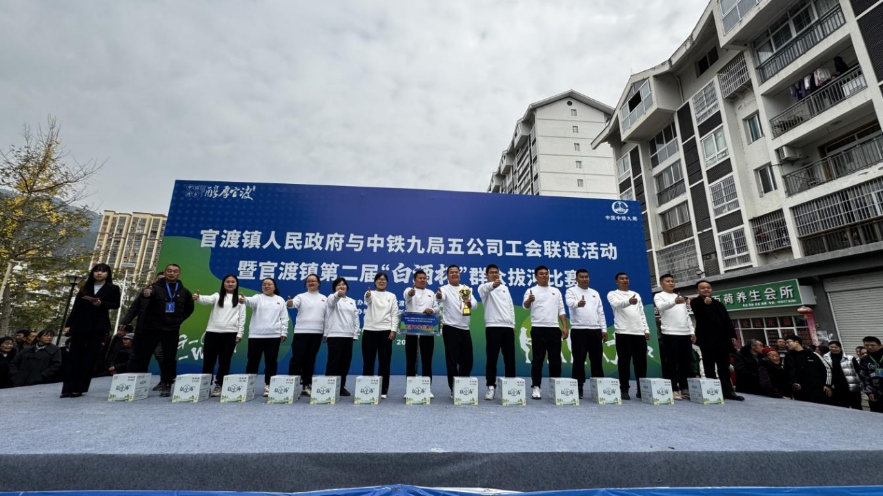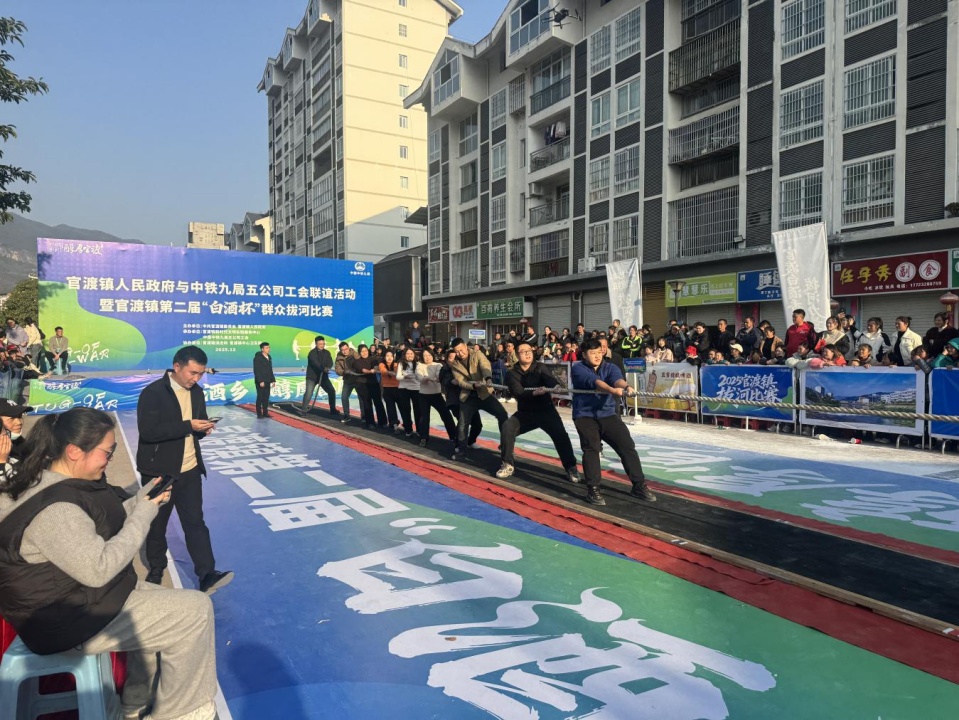 “预备——拉!”近日,随着一声清脆的哨响,巫山县官渡镇滨河广场瞬间沸腾。由官渡镇政府与中铁九局五公司联合举办的第二届“白酒杯”群众拔河友谊赛火热开赛,来自全镇22个村和8家镇属企事业单位共计360人同场较劲,吸引千余名群众围观助威。