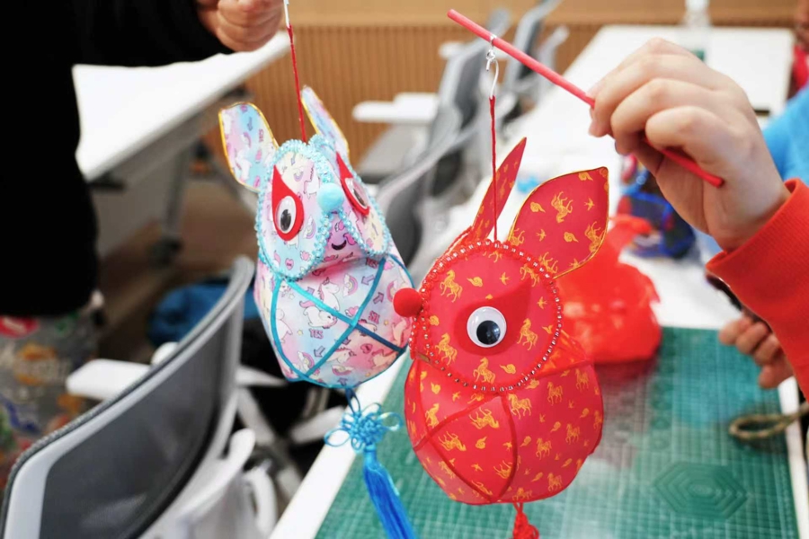 学员们全程专注练习,在老师的悉心指导下逐渐熟练掌握操作技巧。体验结束后,一盏盏造型灵动的兔子灯次第亮起,暖光摇曳、笑意盈盈。有学员从“握不好铅丝”的生涩,到独立完成作品的惊喜,第一次真切体会到非遗手作的魅力;有学员表示零基础也能快速上手,回去后想带孩子一起学习,让非遗文化在家庭中延续;也有学员希望能推出更多系统课程,让自己能持续精进,成为非遗传承的一份子。